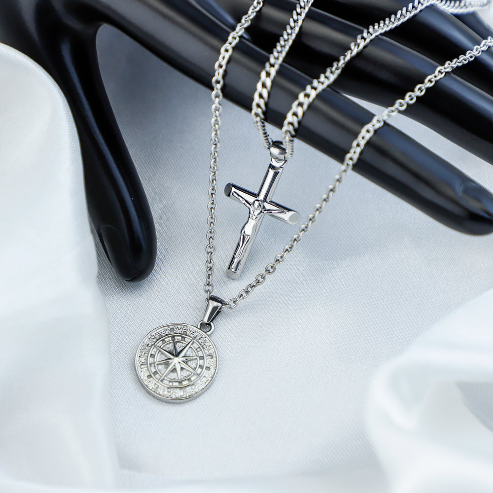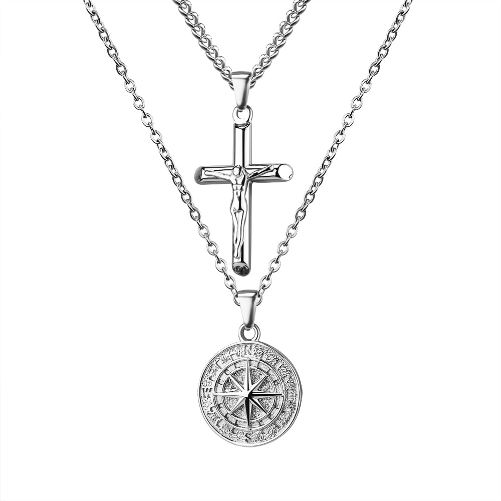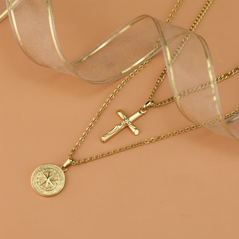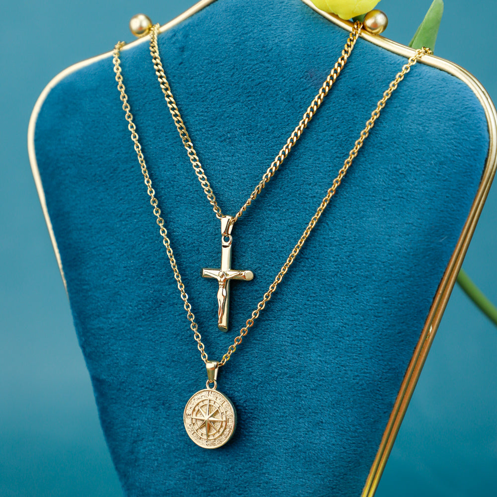 Stacked Necklaces Cross & Compass Layered Necklaces (2 necklaces)