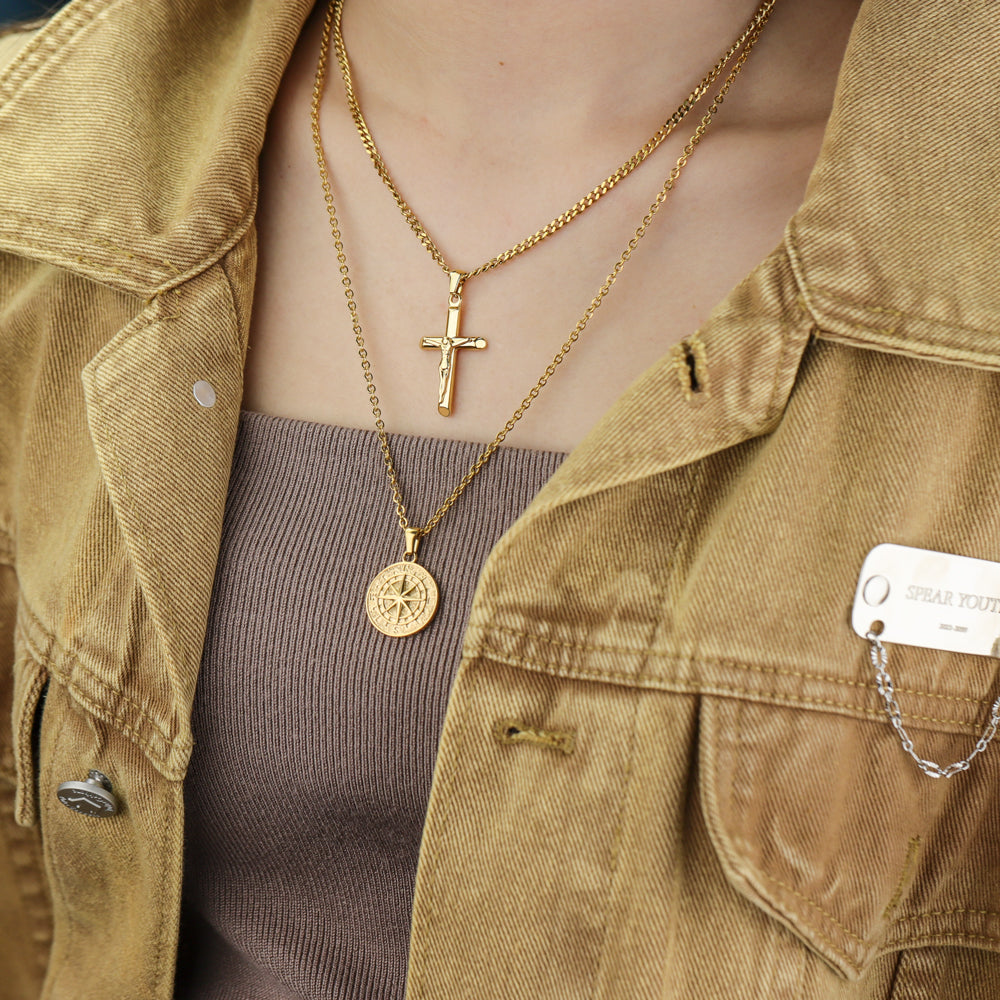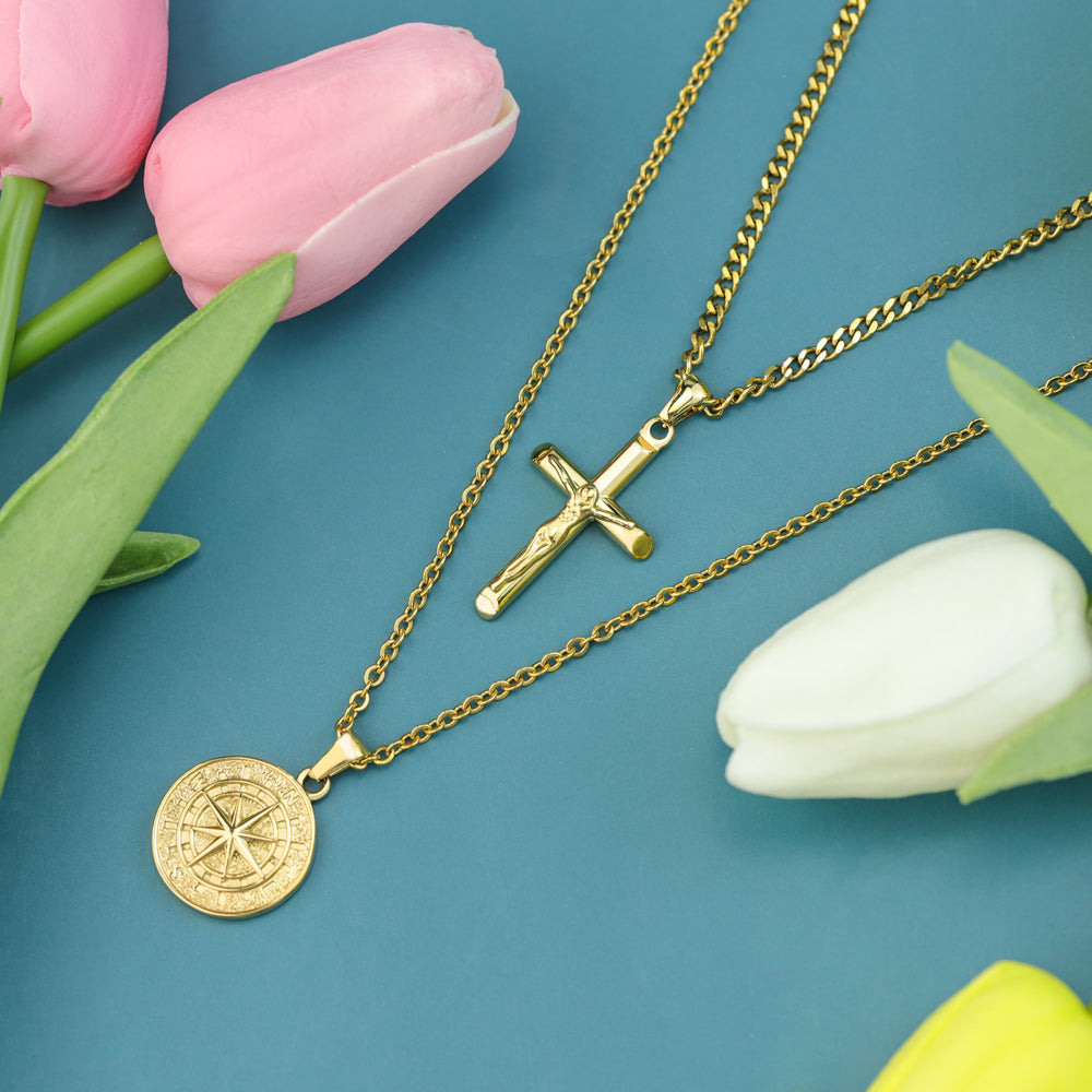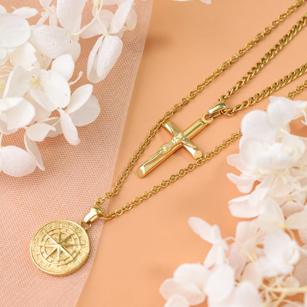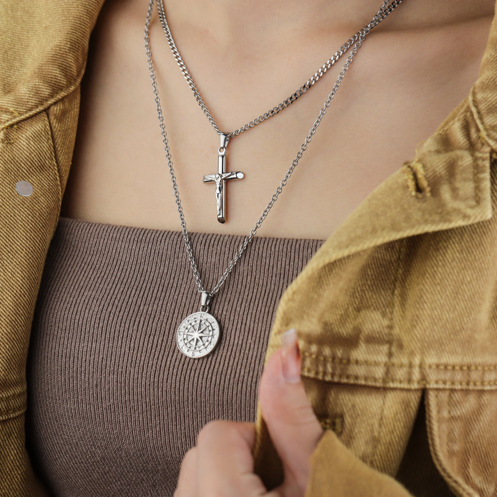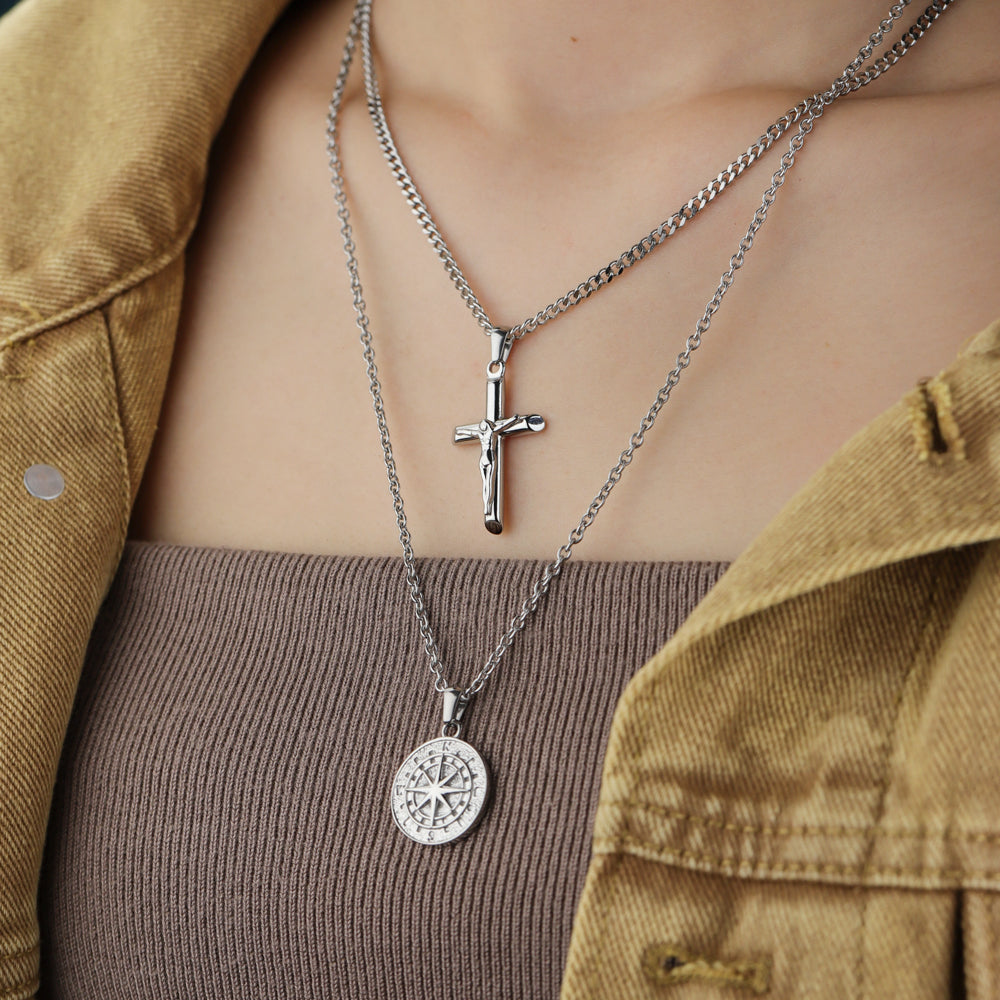 Stacked Necklaces Cross & Compass Layered Necklaces (2 necklaces)