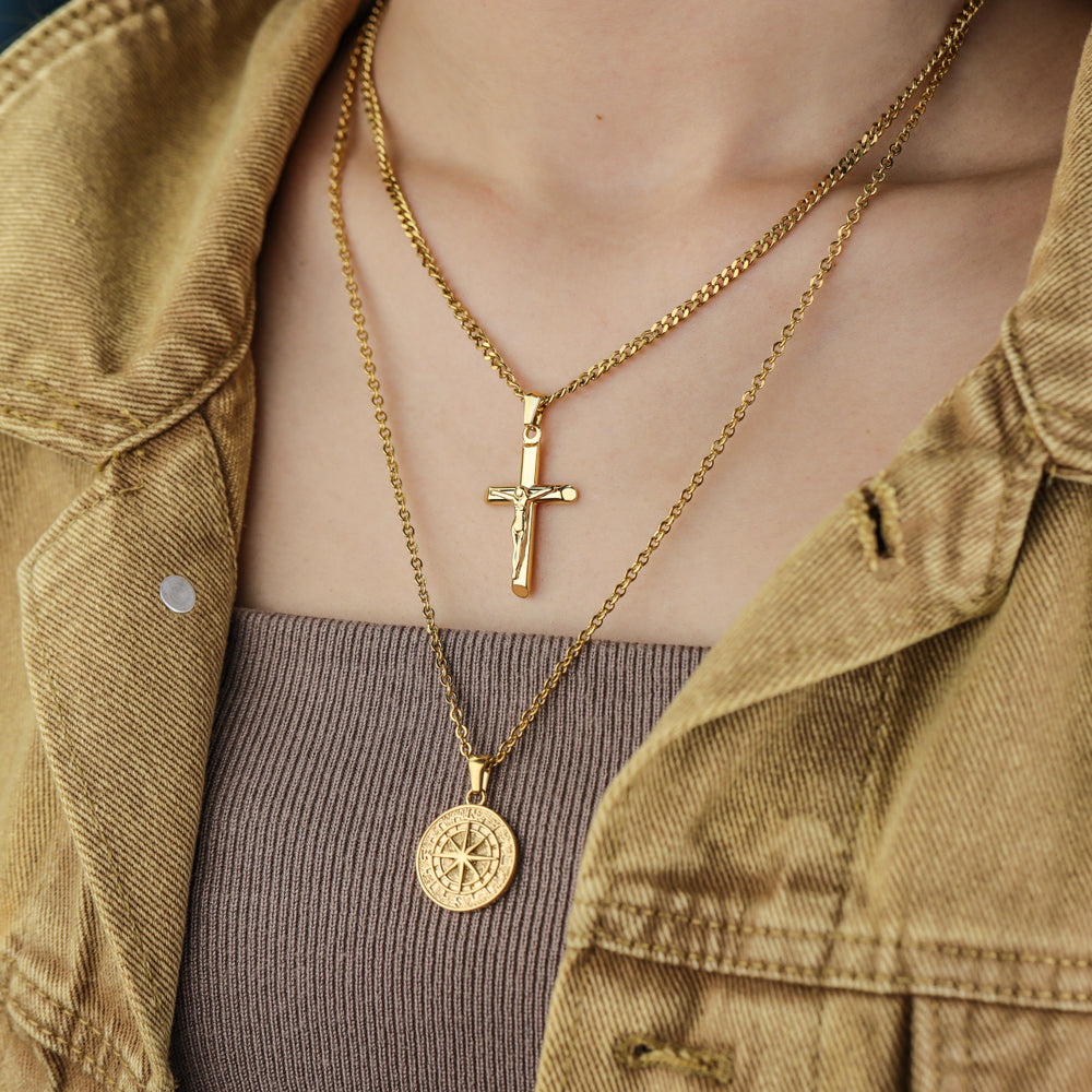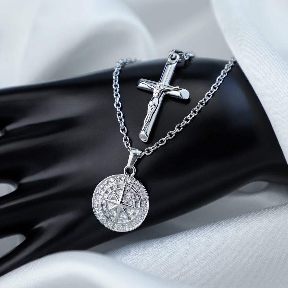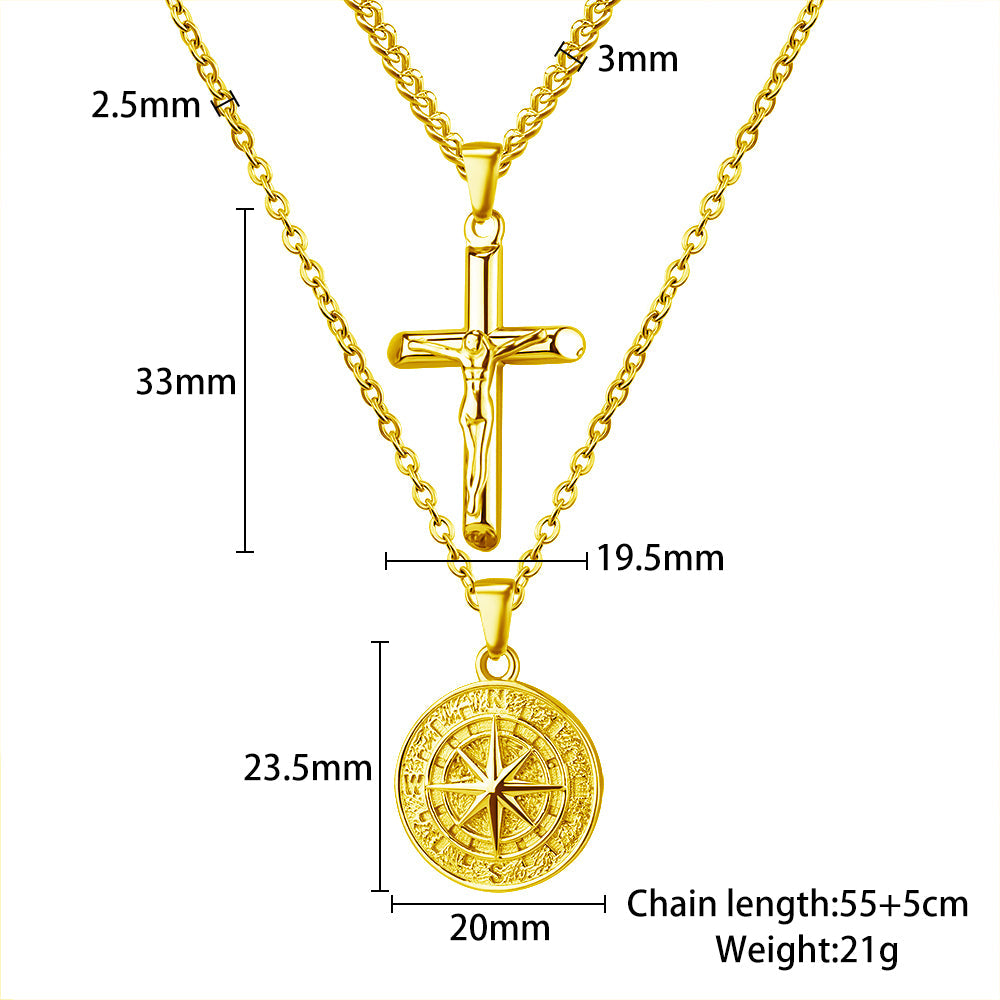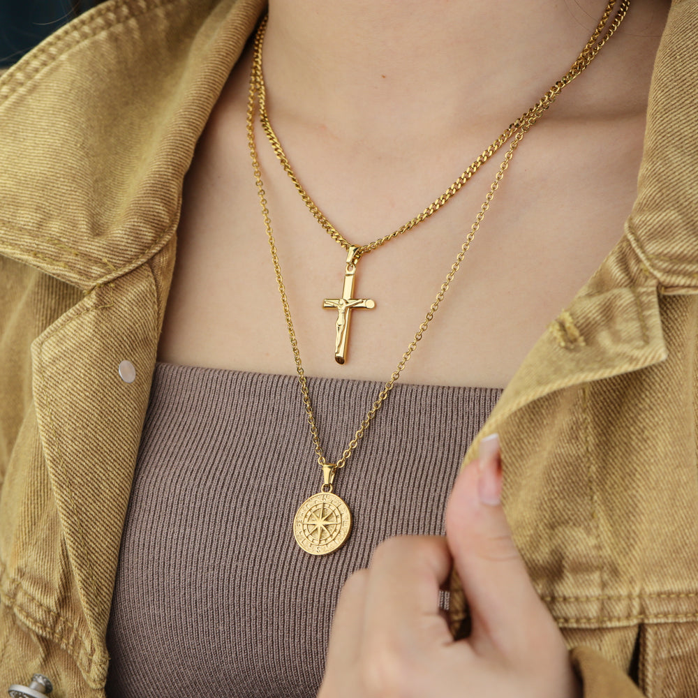 Stacked Necklaces Cross & Compass Layered Necklaces (2 necklaces)